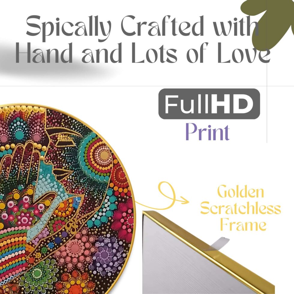 This captivating wall painting seamlessly blends traditional artistry with contemporary design, making it a perfect addition to any modern living space. Crafted with meticulous attention to detail, it features intricate patterns and vibrant colors that evoke a sense of harmony and cultural richness. Ideal for enhancing the ambiance of your home or office, this artwork serves as a testament to timeless craftsmanship and artistic expression.